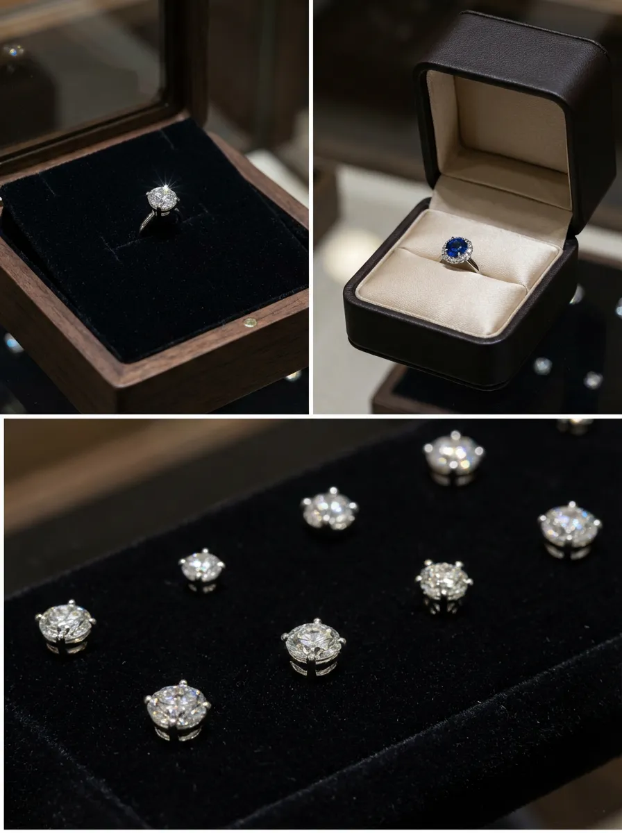Сложная геометрия. Мы объединяем несколько меньших камней (например, в форме цветка или тройной) с помощью общих зажимов. Это создает эффект большего веса карата с ярким блеском.